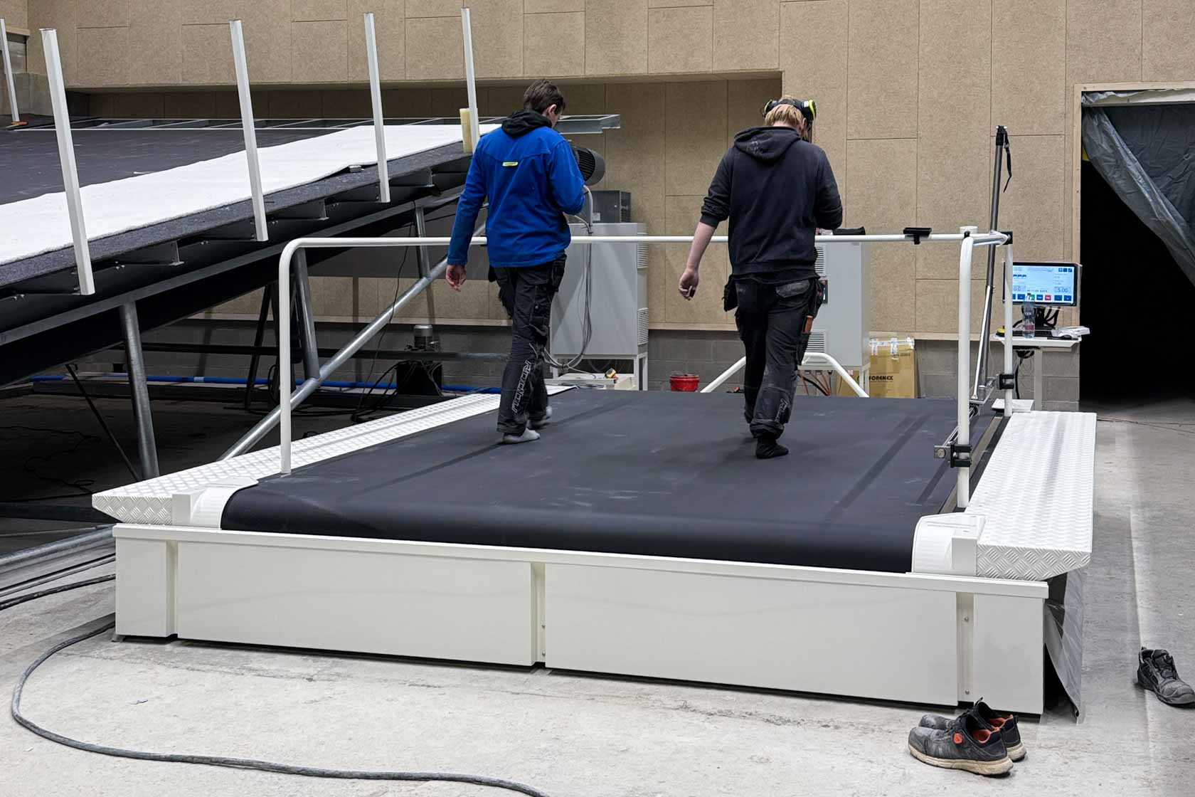 Das 2700 mm breite Laufband ermoeglicht es Trainern und Athleten, an allem von technischer Verfeinerung und Bewegungsanalyse bis hin zu hochintensivem Intervalltraining in einer kontrollierten Umgebung zu arbeiten. In Kombination mit der Test- und Trainingsinfrastruktur der Arena wird das Rodby Innovation Laufband zu einem wichtigen Werkzeug innerhalb des integrierten Umfelds, das darauf ausgerichtet ist, den Schweizer Ausdauersport auf internationalem Niveau zu staerken.