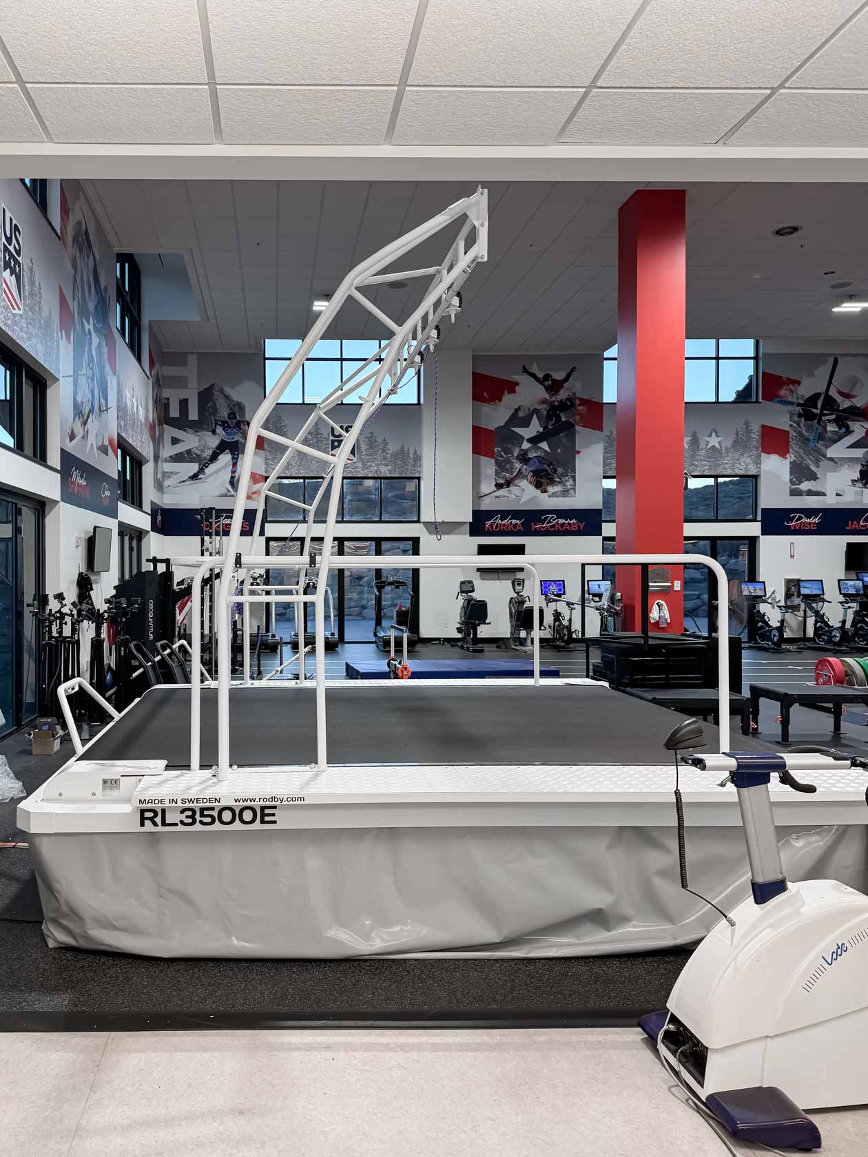 Rodby Innovation hat einen massgeschneiderten Sicherheitsrahmen auf dem bestehenden Rodby Laufband am USANA Center of Excellence installiert, dem Kern des Eliteleistungsprogramms von U.S. Ski & Snowboard in Salt Lake City. Das Zentrum ist ein international anerkanntes Trainingsumfeld, in dem amerikanische Weltcup- und Olympiasportler mit Unterstuetzung moderner Technologie und Sportwissenschaft entwickelt werden.